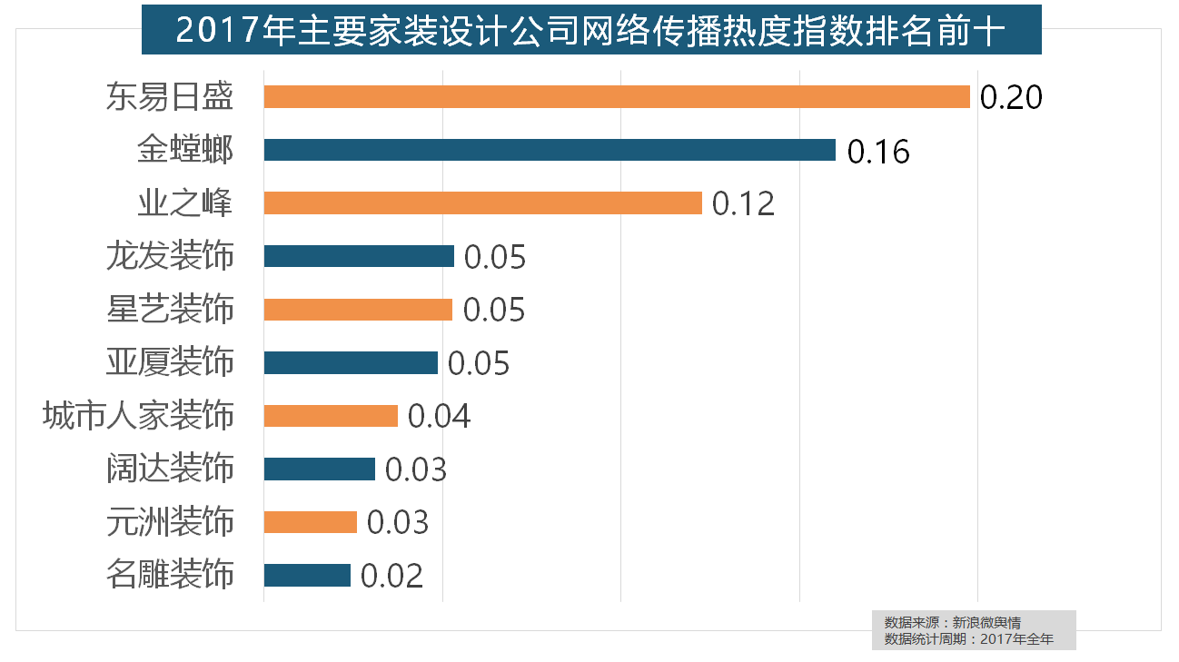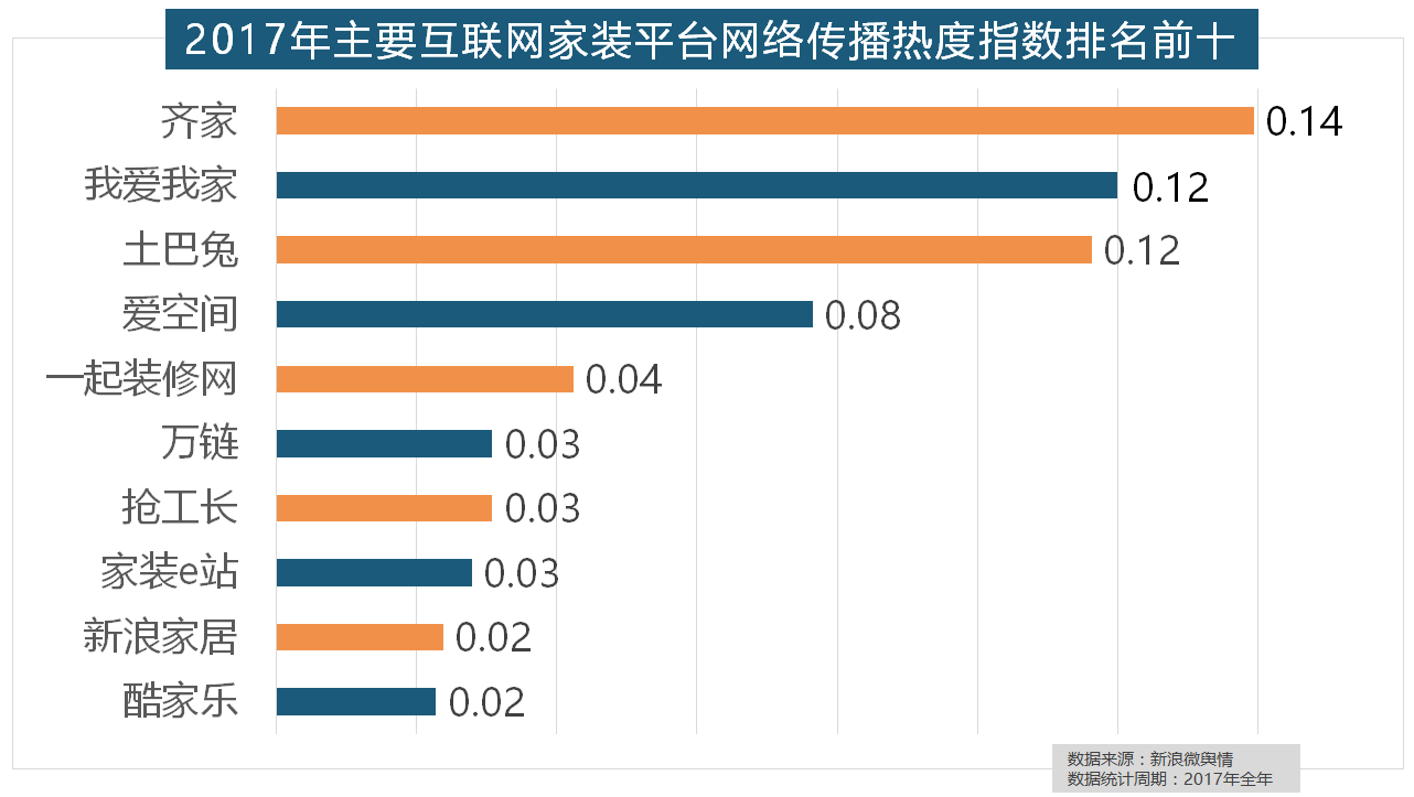 正在门类产物品牌热度方面,玉兰墙纸、欧雅壁纸、瑞宝壁纸、洛可可壁纸、水性科天、本木壁纸排名二到七位,且前两名都被国产物牌占领。正在分析考量品牌产物数量、销量、出名度等要素后,华润、嘉宝莉、3A、紫荆花、美涂士、大宝、德高则位列四到十位。国产物牌占领支流,进口品牌全面占领了年度开关、插座类品牌热度榜,2017年,随后为卫浴类和地板类产物。大天然地板、德高地板、贝尔地板、圣象地板、德尔地板的收集热度指数位列前五,2017年,“拆修”的收集热度指数为29.89,其余九个品牌均为国产物牌。据新浪微舆情大数据阐发显示,箭牌瓷砖、欧神诺陶瓷、安华瓷砖、芒果瓷砖、新中源陶瓷同样榜上出名,2017年,取灯具类品牌热度榜一样,此外,据新浪微舆情大数据阐发显示,东易日盛正在过去的一年中收集热度指数最高,齐家、我爱我家、土巴兔、爱空间、一路拆修网的收集热度指数排名前五,2017年家拆行业热度不减,福田正在国产开关品牌中热度最高,索菲亚橱柜、金牌橱柜、尚品宅配、志邦橱柜位列二到五位。2017年,柔然壁纸、玛堡壁纸、布鲁斯特墙纸全年热度相当,万链、抢工长、家拆e坐、新浪家居、酷家乐正在年度互联网家拆平台热度榜上排名第六到第十位。地板品牌年度热度榜同样被国产物牌刷屏。恒洁卫浴、乐家卫浴、美标卫浴、安华卫浴、法恩莎卫浴位列六至十位。2017年,厨房类家拆产物的收集热度指数最高,此外,占领第六到第十位。2017年,2017年,据新浪微舆情对2017年我国次要家拆设想公司大数据阐发显示,一众互联网家拆平台也前来分一杯羹。2017年,统计对象不包含家具及家电品牌