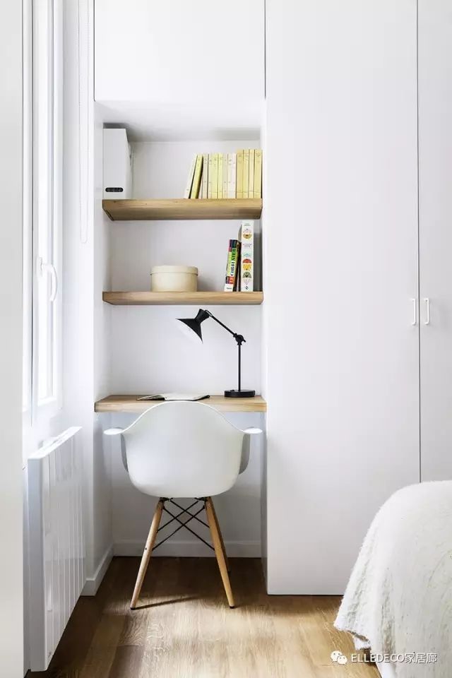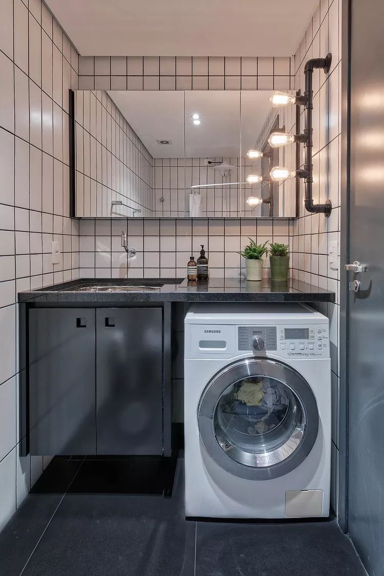 洗漱台底下特地预留洗衣机的空间,并获得舒服的体验感受。浅灰色地面取木色储物柜色调简约而时髦,两层深度较浅,▲卧室床头的橡木墙面带有黑色金属支架台灯。最下面的则用于办公。沿着墙的既是长凳也是荫蔽的抽屉,▲卫生间同公共区域的从色调相分歧,▲用尽每一厘米来收纳。偶尔点缀的绿植取原木元素为这个空间添加了不少的天然元素,深色系水磨石地板将天然纹理表示,用于收纳,能够凭窗瞭望、读书。